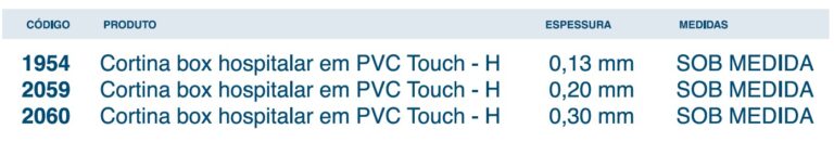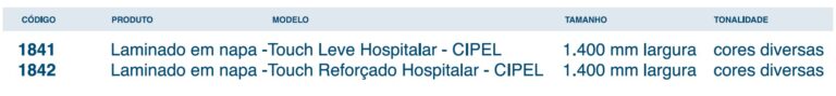 Especialmente desenvolvido para àrea da saúde, o PVC Touch H da Cipel, é um material macio e silencioso, que destina-se a fabricação de capas de colchões, travesseiros, aventais, cortinas de box, travessas ou móveis, proteção de mangas e diversos outros produtos.