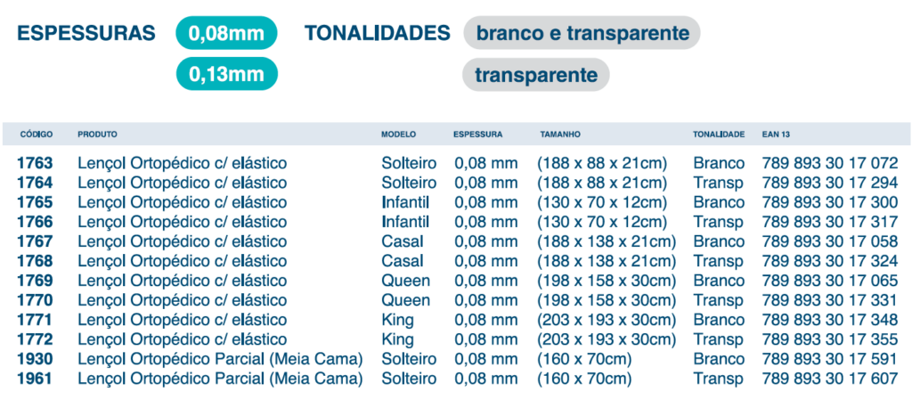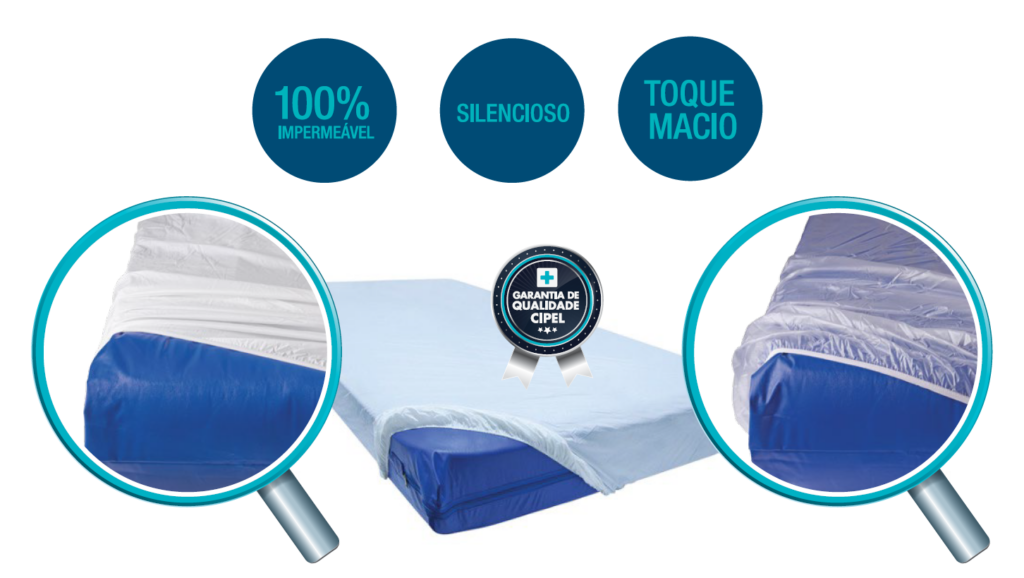 Utilizando a mesma matéria prima dos protetores de travesseiros, o PVC SILICONADO TOUCH H, os lençóis impermeáveis da Cipel & BlendCare são macios e confortáveis. Além do uso em geral, são muito utilizados em home care, hospitais, clínicas de repouso, entre outros. Podem ser adaptados junto com o colchão caixa de ovo (Piramidal). A solda de rádio frequência está presente nas quatro extremidades, permitindo melhor caimento sobre o colchão. Possui acabamento especial com elástico pantiex em toda a sua extensão, proporcionando maior segurança na sua fixação. Podem ser fabricados em medidas especiais de acordo com a necessidade do cliente.